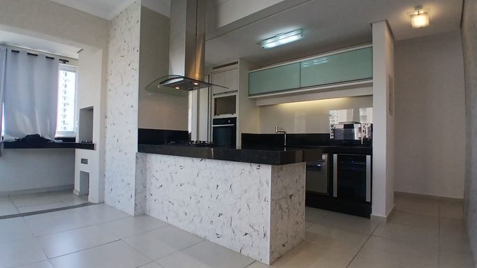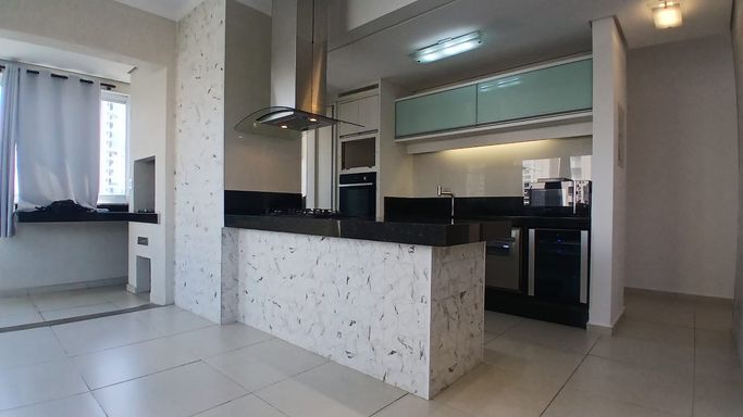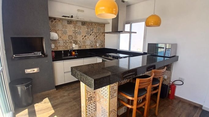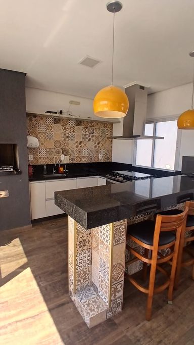 ✔ Cozinha moderna com armários planejados + ilha equipada com: