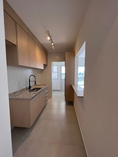 São 78m2, distribuído em 2 quartos, sendo uma suíte, banheiro social, ampla sala de estar integrada a bela varanda gourmet. Cozinha com passa prato. Estão equipados com armários planejados os quartos, os banheiros, a cozinha, área de serviço e área gourmet, além painel de TV na sala de estar. Acabamento em piso porcelanato. 1 vaga de garagem coberta.