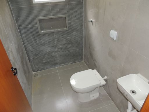 Corredor lateral, com lavanderia e espaço para área gourmet.