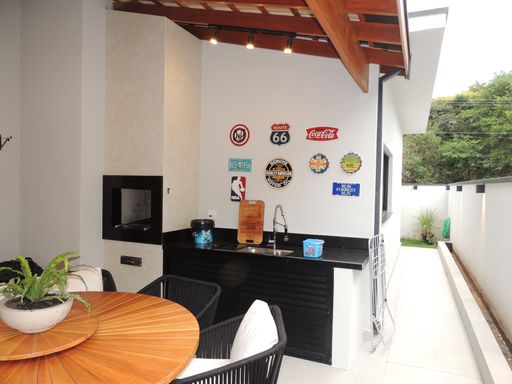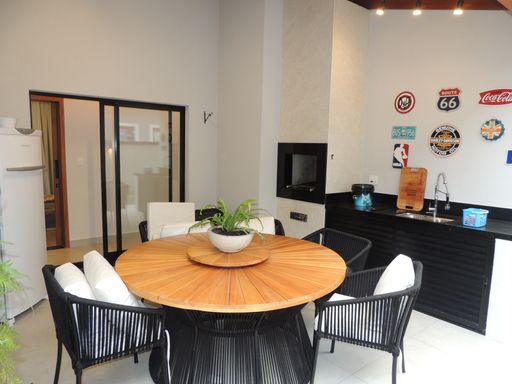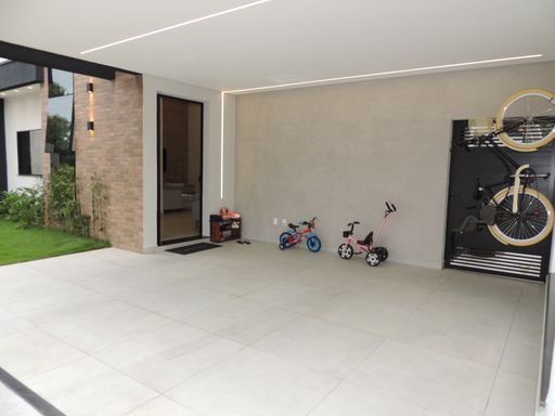 A casa possui um projeto moderno e funcional, com integração entre os espaços e excelente aproveitamento da iluminação natural: