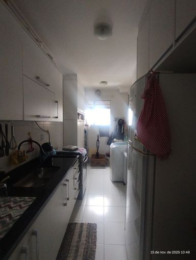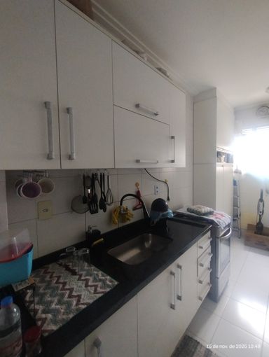 Apartamento com 3 quartos (1 suíte), armários planejados na cozinha, banheiros e suíte.