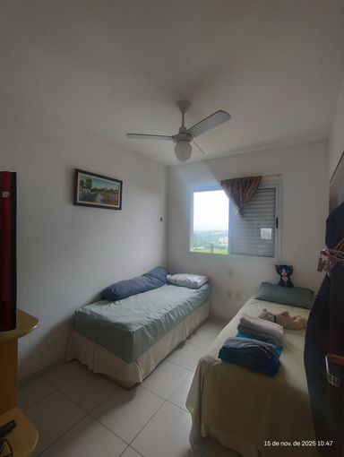 Ambiente climatizado com ar-condicionado na sala e ventiladores nos quartos, garantindo conforto o ano todo.