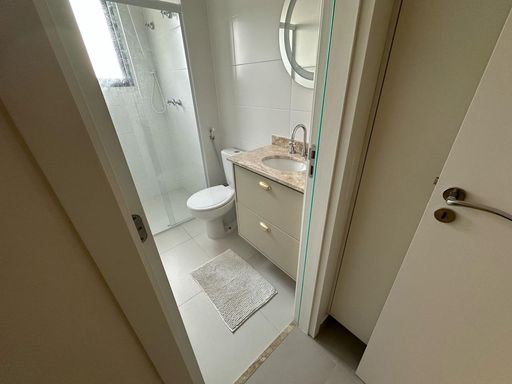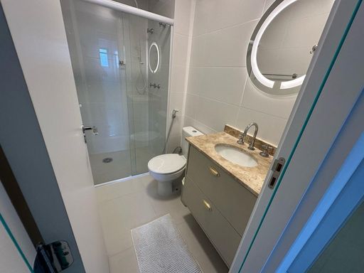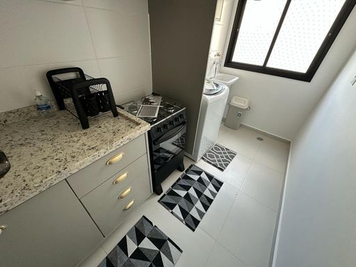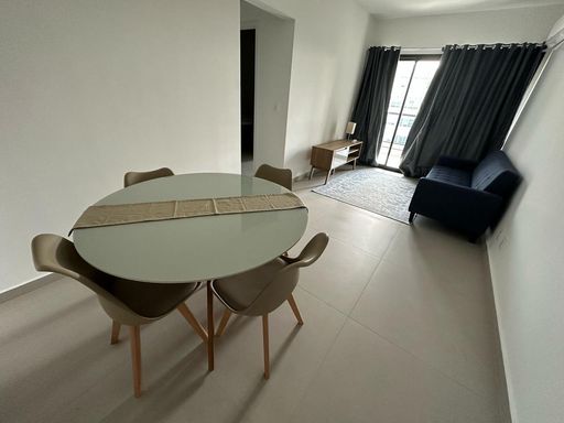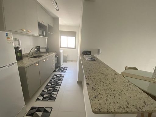 Alugo apartamento mobiliado, andar alto, com 77 m2, sendo 2 quartos, ambos com ar condicionado, 1 suíte, cozinha planejada, sala de estar e jantar integradas com ar condicionado e Sacada.